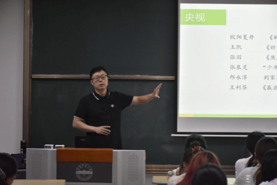 高祥老师曾就职于黑龙江广播电视台,多次荣获中国新闻奖一等奖,从传统媒体到新媒体具有丰富的实务经验和实战经历。高老师以传统媒体形式开篇,以趣味视频作引,徐徐解开“从校园到媒体必跨的‘三重门’”的神秘面纱。他说这门分别是技能门、安全门、情怀门,门内门外要紧盯行业需求。他认为好的记者要抓住机遇,接触各行业的人,触达最前沿的事,培养透过现象看本质的慧眼,锻造微观中把握全局的思维,以小见大的功力。