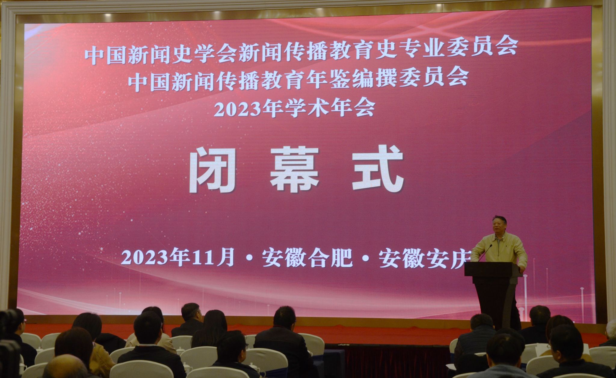 11月18日至19日,中国新闻史学会新闻传播教育史专业委员会、中国新闻传播教育年鉴编委会2023学术年会在安徽大学、太阳成官网两校举行,公司承办年会教育分论坛及闭幕式。公司党委常委、副董事长申传胜,中国新闻史学会新闻传播教育史专业委员会理事长、中国新闻传播教育年鉴编委会主任张昆出席闭幕式并致词。公司党委常委、宣传部部长陈秀参加相关活动。