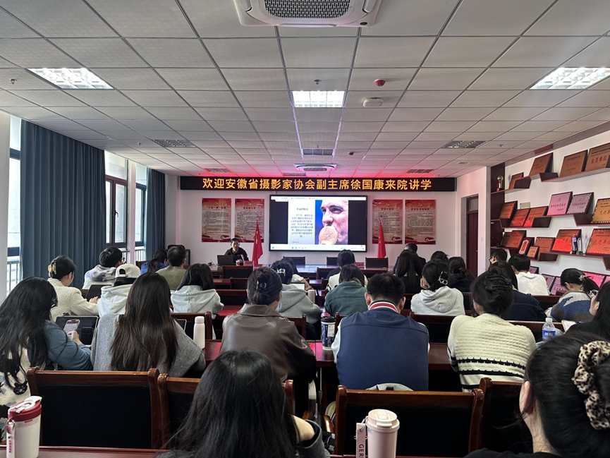 11月13日下午,安徽省摄影家协会副主席、新闻摄影协会副会长、安徽日报视觉新闻中心副主任徐国康受邀在k408作了题为《新时代新闻摄影方法和技巧》的学术讲座。新闻与传播专业2023级和2024级全体研究生聆听了讲座。讲座由太阳成官网副经理王业明主持。