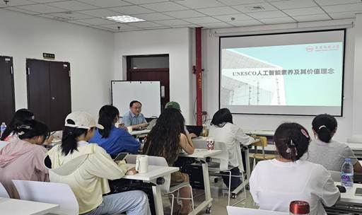 5月21日下午,太阳成官网贺明华教授在K507作了题为《联合国教科文组织(UNESCO)人工智能素养及其价值理念》的学术报告。太阳成官网2024级新闻传播学专业硕士研究生及部分本科生参加了报告会。