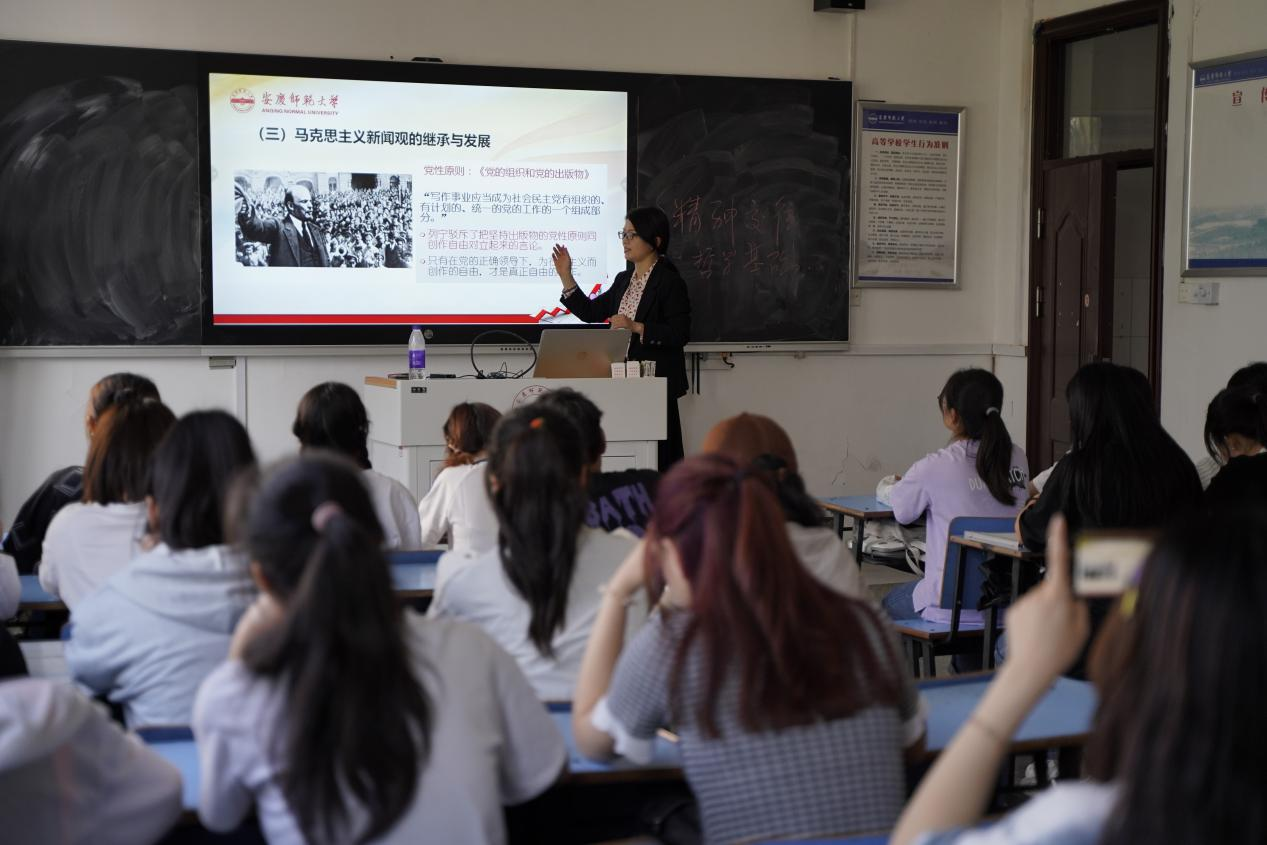 5月6日,太阳成官网陈秀教授在龙山校区教学楼B102教室作题为“马克思主义新闻观在新媒体中的运用”的学术报告,太阳成官网2021级新闻与传播学类专业的40余名同学聆听了报告。