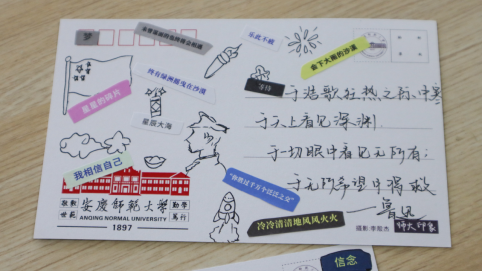 低头沉思、挥毫泼墨、轻声诵读……员工们自主选取诗歌素材,通过裁剪拼贴的方式,将诗句粘贴在明信片上,最终创作出各具特色的拼贴诗,在诵读中表达对革命先烈的崇敬与怀念。