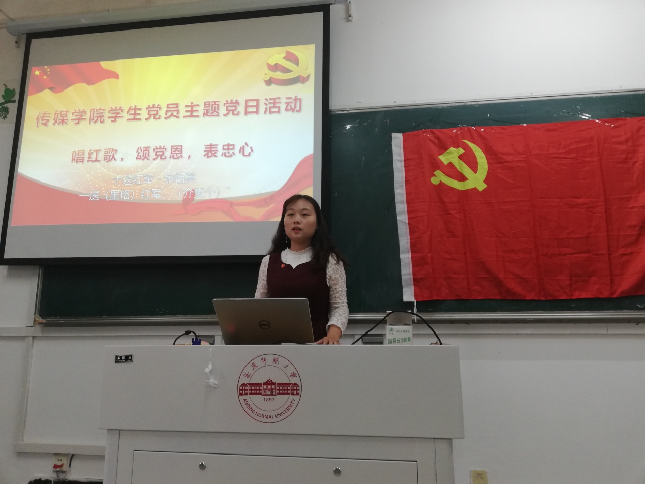 活动的第二部分,也是活动最为重要的一部分,便是“唱响红歌”。在活动开始之前,同学们已经在私下反复播放学习了《十送红军》歌曲。今天,在活动现场,当歌曲音乐响起时,全体党员以饱满的热情,放声歌唱,歌声嘹亮,激荡着每位党员的心灵。