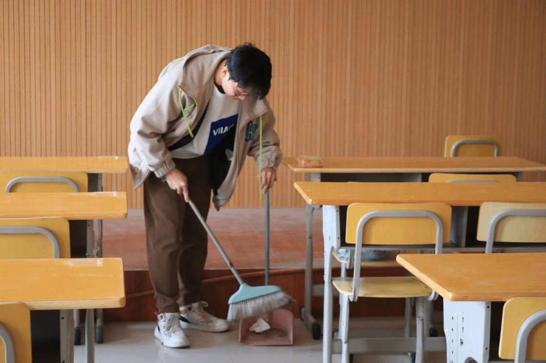新闻传播学类专业2022(4)班的梁宏宇在接到征集志愿者的通知时主动申请去打扫自习室,“乐于助人是中华民族的传统美德,我听说这是为考研员工提供的自习室,想到我将来也会是其中一员,也会有学弟学妹来帮助我们打扫卫生,所以我要来出一份力,”他说,“就算不能减缓考研的压力,也至少可以为他们创造一个较为舒适和干净的学习环境,那么这件事情就非常有意义。”