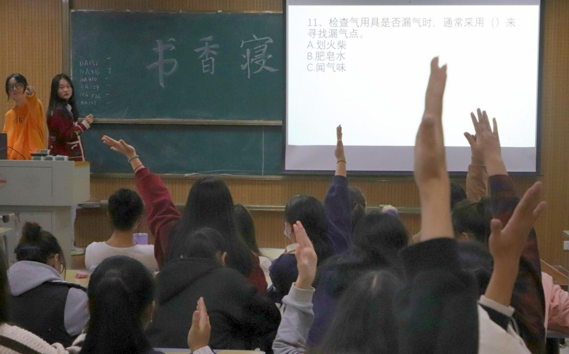 活动以“寝室安全问题及生活常识问答”比赛结尾,所有参赛选手均可参与抢答环节。“刚开始我们比分落后,但是我们踊跃举手回答问题,慢慢追赶上了比分。”新闻传播学类专业2022(1)班的郭墨香是冠军寝室10A410队伍中的一员,在叙述完参赛历程后她补充说到,“在这个活动中取得优异成绩让我们很自豪,我们也希望在接下来参加更多类似的活动,增进我们之间的感情。”