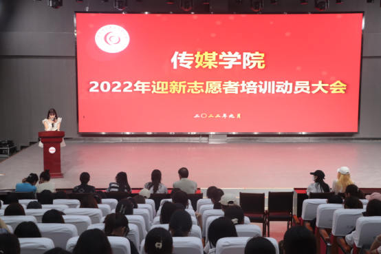 “既然选择了这份责任,便只顾风雨兼程,让新生在我们的带领下迈出大学的第一步,希望所有志愿者们在此次活动中有所收获。”网络与新媒体专业2021(3)班黎杨作为员工志愿者代表,表达了迎新志愿者们努力完成迎新工作的坚定态度。