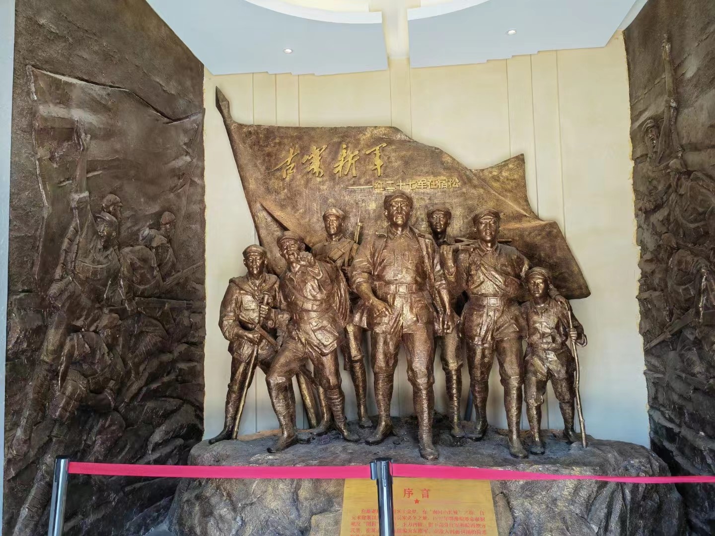 在红二十七军纪念广场,矗立着标有“红军精神,永放光芒”的红军纪念雕塑,工作人员向大家介绍,作为红色教育基地,该处是“主题党日”活动点,每逢重大节日,当地的各单位党支部会组织人员重温入党誓词,向雕像敬献花篮。参观过后,成员们对白崖寨的人文景观和革命历史有了更深层次的感悟。