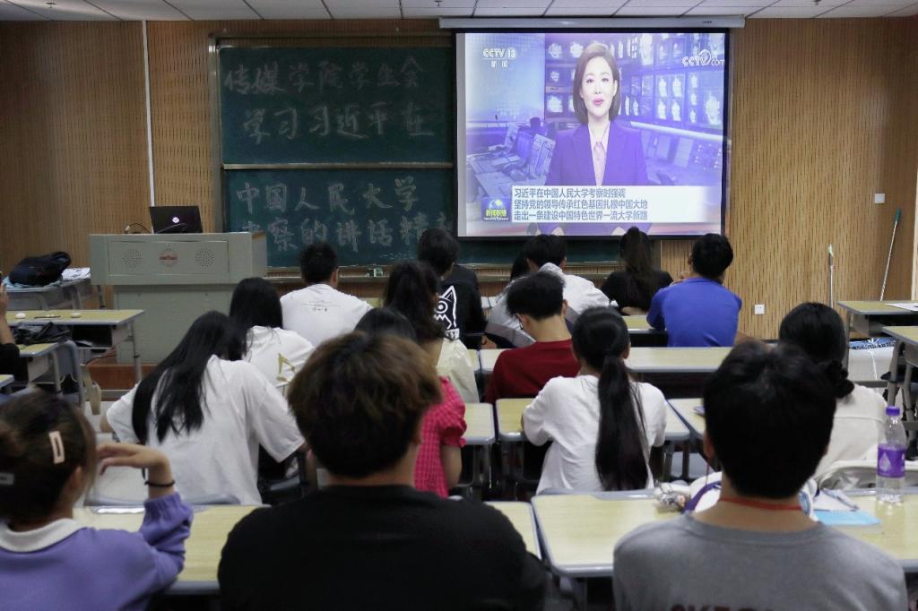 员工会主席团成员、新闻学专业2020(2)班王士凌在集中学习后说到:“我们要坚定不移听党话,矢志不渝跟党走,在青春实践中争做堪当民族复兴重任的时代新人。”同时希望自己和同学们能够发挥自己身为传媒人的专业能力,用青春力量践行新闻理想。(撰稿:孙宛云 摄影:朱睿 审核:张万茂)