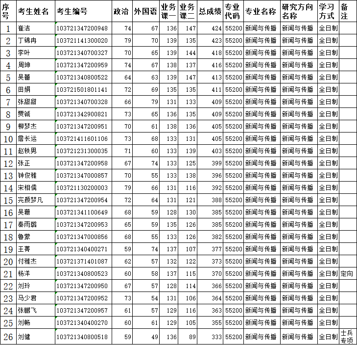 新闻与传播(调剂)复试结果及拟录取名单公示