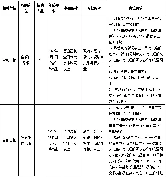 2.合肥报业传媒集团对本次招聘享有解释权。