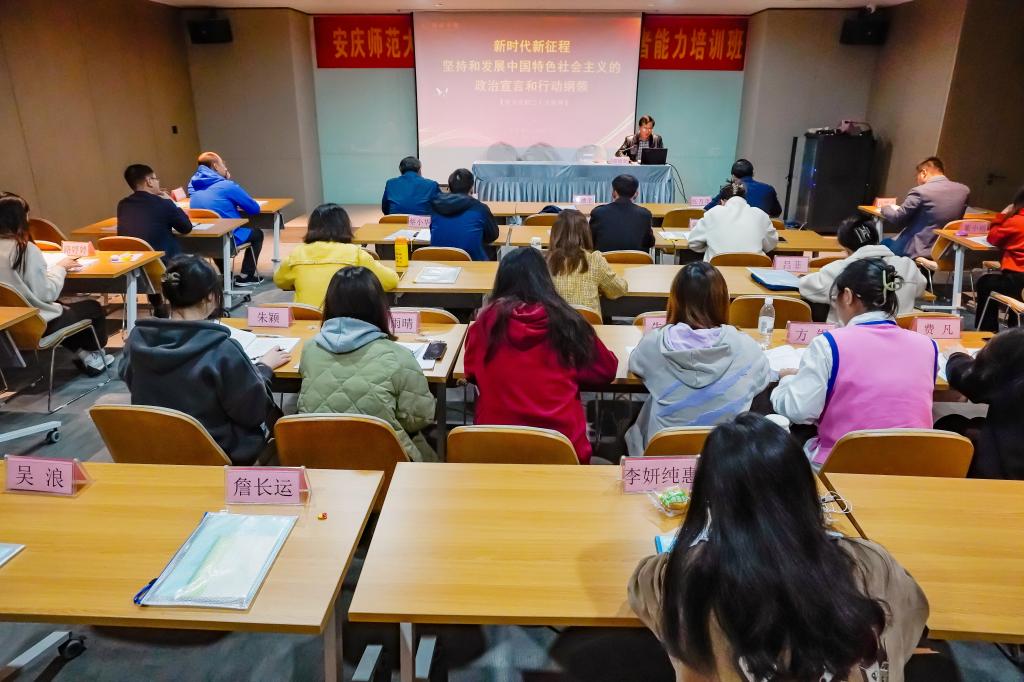 报告会上,公司党委书记詹德全以《新时代新征程坚持和发展中国特色社会主义的政治宣言和行动纲领》为题,从战略定位、大会主题、实践基础、理论指导、基本路径、根本保证和团结要求等七个方面领学了党的二十大精神。详细讲述了党的二十大召开的重大意义、主要精神、战略安排、具体部署,系统阐述了党的二十大提出的重大思想观点、重要论断、重大举措。詹德全指出,深入学习宣传贯彻党的二十大报告精神是当前最重要的政治任务,学院各基层党组织要深入开展学习研讨,切实用党的二十大精神武装头脑,完整、准确、全面贯彻新发展理念,服务学院中心工作高质量发展;以党的二十大报告精神为指引,激励广大党员干部、师生员工干事创业、担当作为,在推进学院高质量发展中奋勇向前。他要求党员干部要全面准确把握报告精神实质,要坚定政治自觉,深刻认识新时代十年伟大变革的重大意义,深刻领悟“两个确立”的决定性意义,更加自觉做到“两个维护”;要坚定政治自信,从党的百年奋斗史和新时代十年伟大变革中汲取精神力量,让听党话、跟党走成为党员干部师生员工的自觉追求,更加自信地在中国共产党领导下奋进新征程、建功新时代;要坚定政治担当,把党的二十大精神转化为新时代新征程上干事创业的精神动力和实际行动,举旗帜、当旗手,走新路、作先锋。