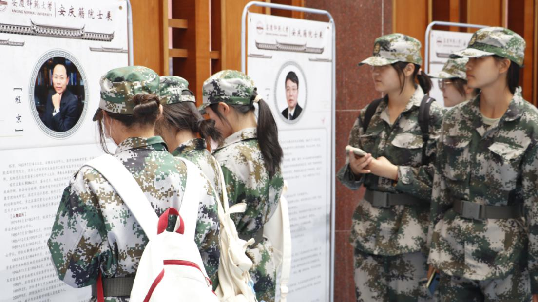 图书馆一楼大厅内,摆满了以31位安庆籍中国科学院院士的奋斗历程与人生经历制作而成的展板,新生们依次参观,并对各位院士们的精神进行了学习。“看着院士们和蔼可亲的面容,了解他们光辉的学术成就,让我对院士们多了一份崇敬。”在参观完本次展览后,来自新闻传播学类专业2022(7)班的陈佩瑶说到,她表示会以各位院士为榜样,努力钻研、认真致学,勇敢地驶向梦的彼岸,“我们这辈青年必将接过院士们传递过来的火把,照亮脚下的路,驱散内心的严寒!”