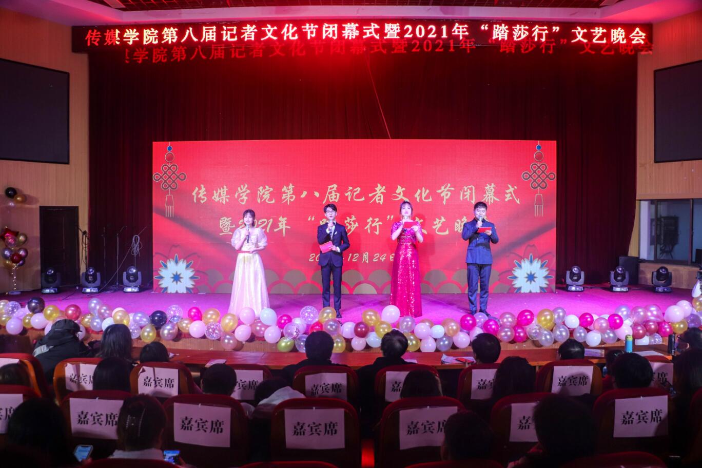 洋溢着青春激情的歌曲《少年》、描绘江南静谧的乐器合奏《烟雨行舟》、动感曼妙的舞蹈《dumb dumb》......12月24日,太阳成官网第八届记者文化节闭幕式暨2021年“踏莎行”文艺晚会在图书馆东厅举办。公司党政班子成员和部分教师出席此次晚会,与400余名员工共赏一场视听盛宴。