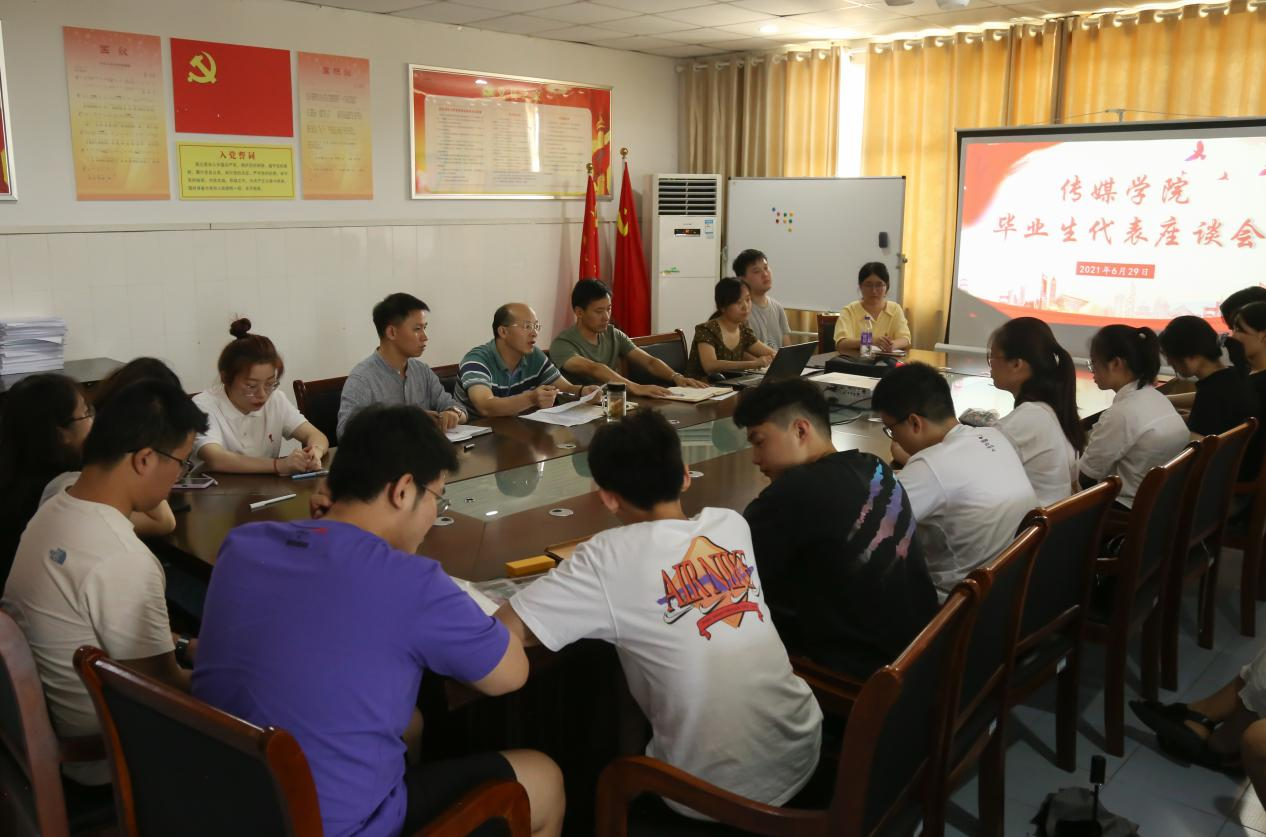 座谈会上,毕业生们对学院领导和老师在校期间给予自己的关心和支持表达了感谢,并结合自身实际对学院在社会实践、课程设置、员工社团活动、考研、创新课余活动、员工技术能力培养等方面提出了宝贵意见和建议。广播电视学专业2017(1)班的吴浩表示自己大学四年成长了许多,也学到了很多,不仅是专业课程上的学习,更是学院给予的课外实践机会,“这些经历都是我人生中重要的一部分,正是有了这些实践经历,我的老员工活才更精彩。”同时,他也对学院的实践工作提出建议,希望学院扩老员工实践平台,让更多传媒学子投入专业实践,从而加强自身专业性。
