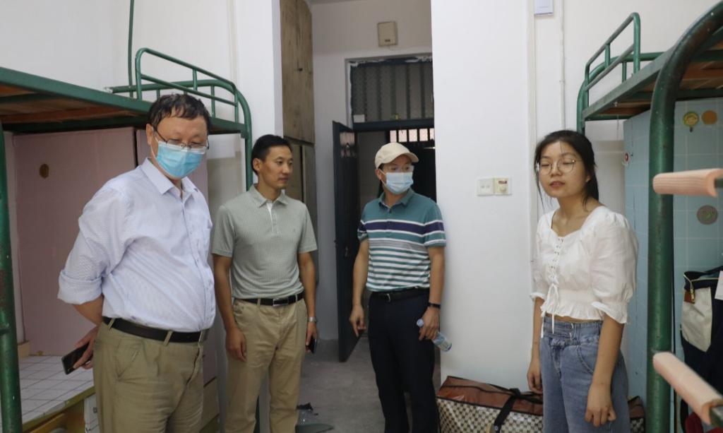 9月13日上午,传媒公司党总支书记韦长发、经理马俊、党总支副书记张万茂、新生辅导员来到员工宿舍看望新生。