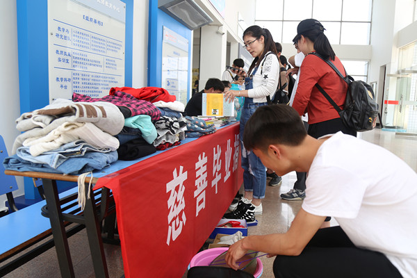 “在本次活动中,大四毕业生将他们的书籍资料、台灯、衣物等用品捐献出来。”活动负责人董小雨介绍,活动主要目的是让毕业捐献成为一种潮流,员工们能够以“爱”为老员工涯画上句号,同时用爱践行微公益。