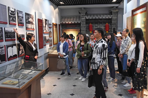 陈独秀的生平事迹和革命故事以图片和展示牌的形式展示在墙上,陈列柜里摆放的陈独秀先生的手稿和书法作品给员工们了解陈独秀带来了更加直观的感受,他们从中体会到了中国共产党的蓬勃发展。“到纪念馆实际参观的教学方式让人印象非常深刻。”网络与新媒体专业2015级张江梦晗是第二次来到独秀园,她认为这次的党课实践教学让她对陈独秀的生平事迹和党的历史有了更加深入的了解。