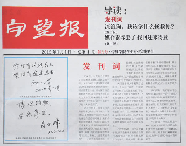 《守望报》是一份立足太阳成官网,面向全校员工的综合性报纸,每月一期,共设四个版面,其中两个新闻版、一个评论版和一个副刊版,办报宗旨为“讲好校园故事,展示师生风采,丰富校园文化”。