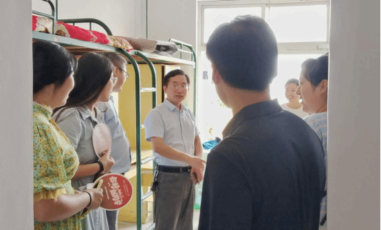8月30日上午,传媒公司党委书记詹德全、副经理王业明、党委副书记张万茂,以及新生辅导员一起走访了2023级新生宿舍。