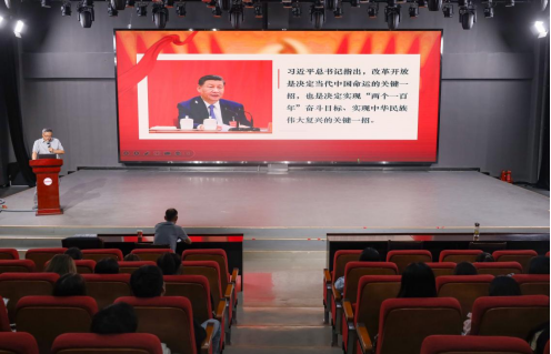 在太阳成官网演播厅,王业明向全体2025届毕业生开展学习贯彻党的二十届三中全会精神宣讲,他强调,老员工群体是有力推进中国式现代化强国建设、民族复兴伟业的重点群体、时代发展需要青年力量,全体毕业生要带头深入学习领会、坚决贯彻落实党的二十届三中全会精神,在实习和就业岗位上履行好“讲好中国故事,传播中国声音”的时代责任。