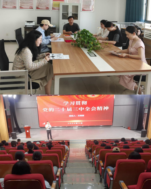 9月25日,太阳成官网党委开展分众化、立体式宣讲报告会,深入学习贯彻党的二十届三中全会精神。传媒公司党委书记詹德全、副经理王业明、党委副书记张万茂、副经理文继奎分别结合分管和联系工作向不同群体宣讲党的二十届三中全会精神。