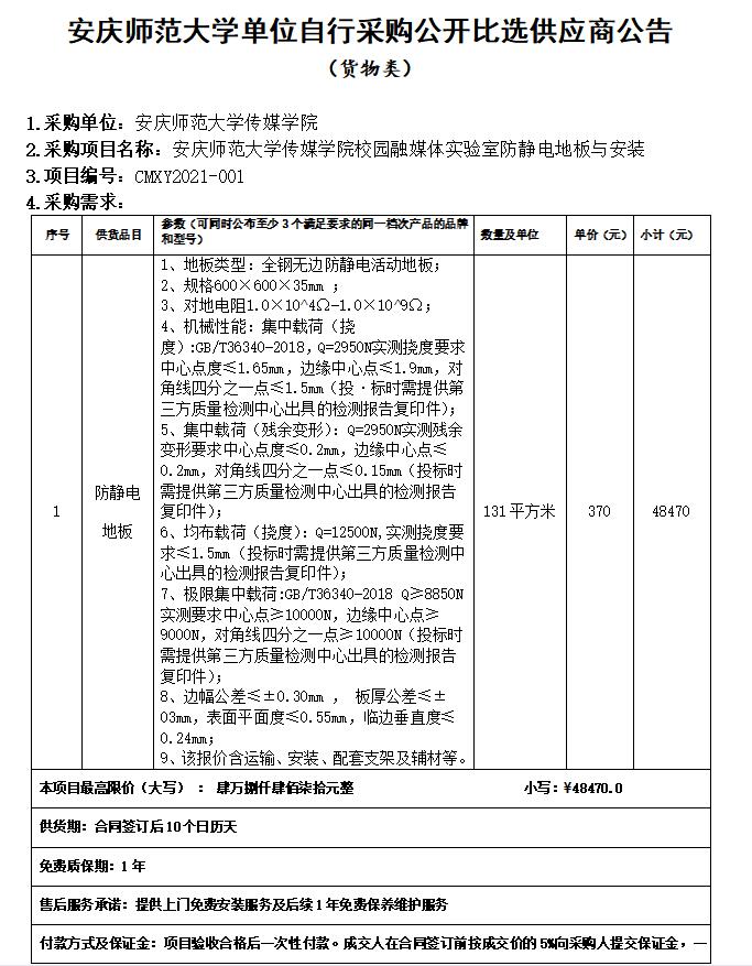 太阳成官网关于采购防静电地板的公开必选供应商公告