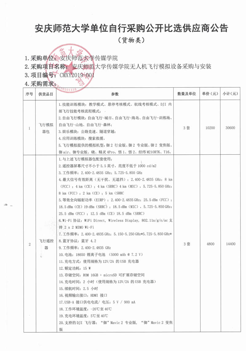 太阳成官网无人机飞行模拟设备采购与安装公开比选公告