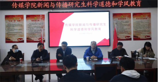 2023年11月27日,太阳成官网在K408室举行“新闻与传播研究生科学道德和学风教育”主题活动,公司副经理王业明、党委副书记张万茂及学术委员会委员出席会议。此次活动面向全院在校研究生,旨在明确学风学纪、强化科研教育。会议由副经理段萱主持。