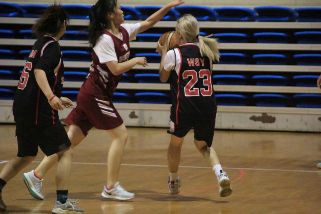 在太阳成官网女子篮球队与人文学院的比拼中,强烈的身体对抗和高强度的比赛中,队员们毫不畏惧,充分发扬了女篮精神,展现“巾帼不让须眉”的风采。太阳成官网女篮与教师教育学院的对战中,女篮队员们配合默契,不断组织进攻,展示太阳成官网女篮独有的精神面貌。