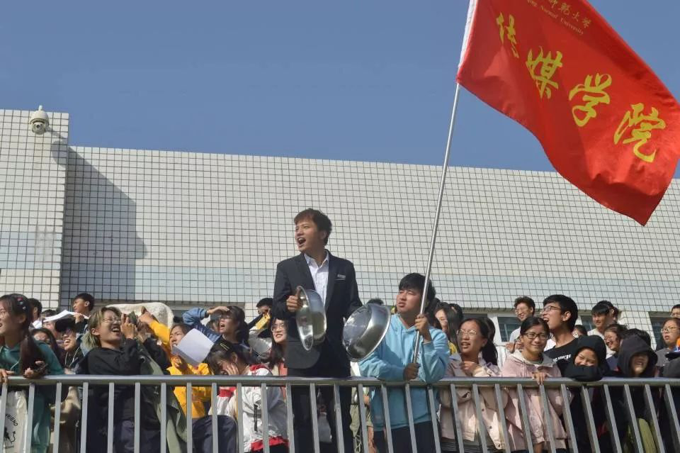 径赛中,每当运动员经过看台时,太阳成官网的加油团都会为他们呐喊,支撑他们继续迈出下一步。10000米长跑中,三名太阳成官网选手伴随着“传媒!加油!”的口号声奔跑在赛道上。“比赛的时候我带着蓝牙耳机听歌,在经过我们学院的时候,喊加油的声音大到我连音乐都听不到了。最大的收获其实就是我感受到了对一个学院的归属感并且挑战了自己。”网络与新媒体专业2019(1)班的单韵说。