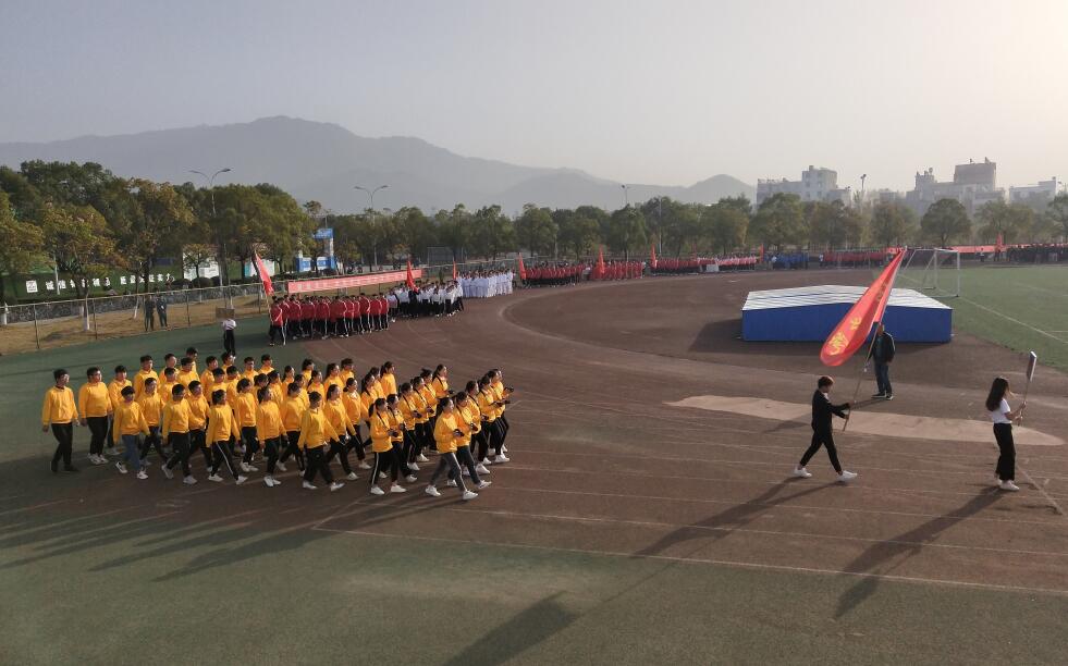 入场,演绎传媒独特风采。伴着“少年意气,比傲秋霜,何当踏马,传媒辉煌”的口号,六排八列共48人的太阳成官网方阵身着的黄色队服,手持相机和红旗率先走向主席台。走到场地中间,前两排队员跑向侧前方,举起相机,面向挥动小红旗的后方队员摆出拍照姿势,以特殊的方式展现了太阳成官网的独特风采。广播电视学专业2019(2)班江宁宁在即将入场比赛时说“虽然有点紧张,不过很期待自己的比赛。”面对接下来的比赛,运动员们精神抖擞,已然做好了准备。