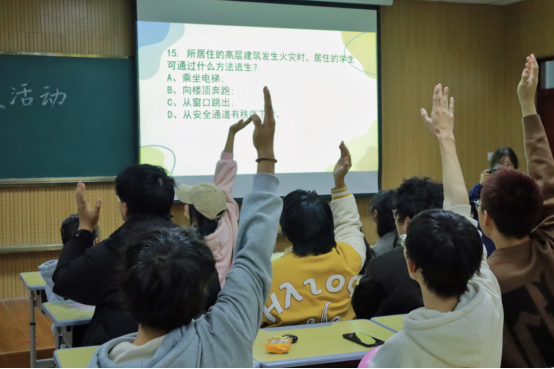 活动以考察学校相关规章制度以及生活常识的“抢答题”游戏结尾。作为参赛选手,数字媒体艺术专业2023级陈正说:“对于这一环节,我和室友提前在网上学习了相关知识,并互相问答,室友们都非常积极。”在叙述完参赛准备后他补充到,这个活动丰富了他对寝室安全的认识,提高了他和室友的安全意识,增强了对寝室安全的责任感和团队协作能力。