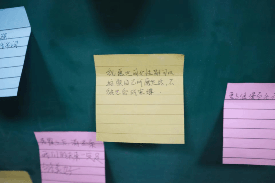 “女孩子就应该温柔点”“生理期而已,这么矫情干什么?”“女孩子上学有什么用?”……活动负责人在黑板上写下“标签”,每位参与活动的员工都有机会对这些标签进行“反抗”,勇敢地表达自己的观点对不赞同的标签说“不”,并在便签上写下寄语。