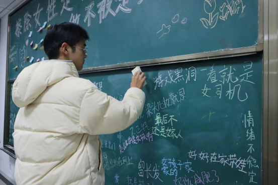 “我生来就是高山而非溪流”“做自己的太阳无需借谁的光”“做自己,你可以是任何样子”……暖心鼓励的话语贴满了黑板,取代了原本写在黑板上的“标签”。