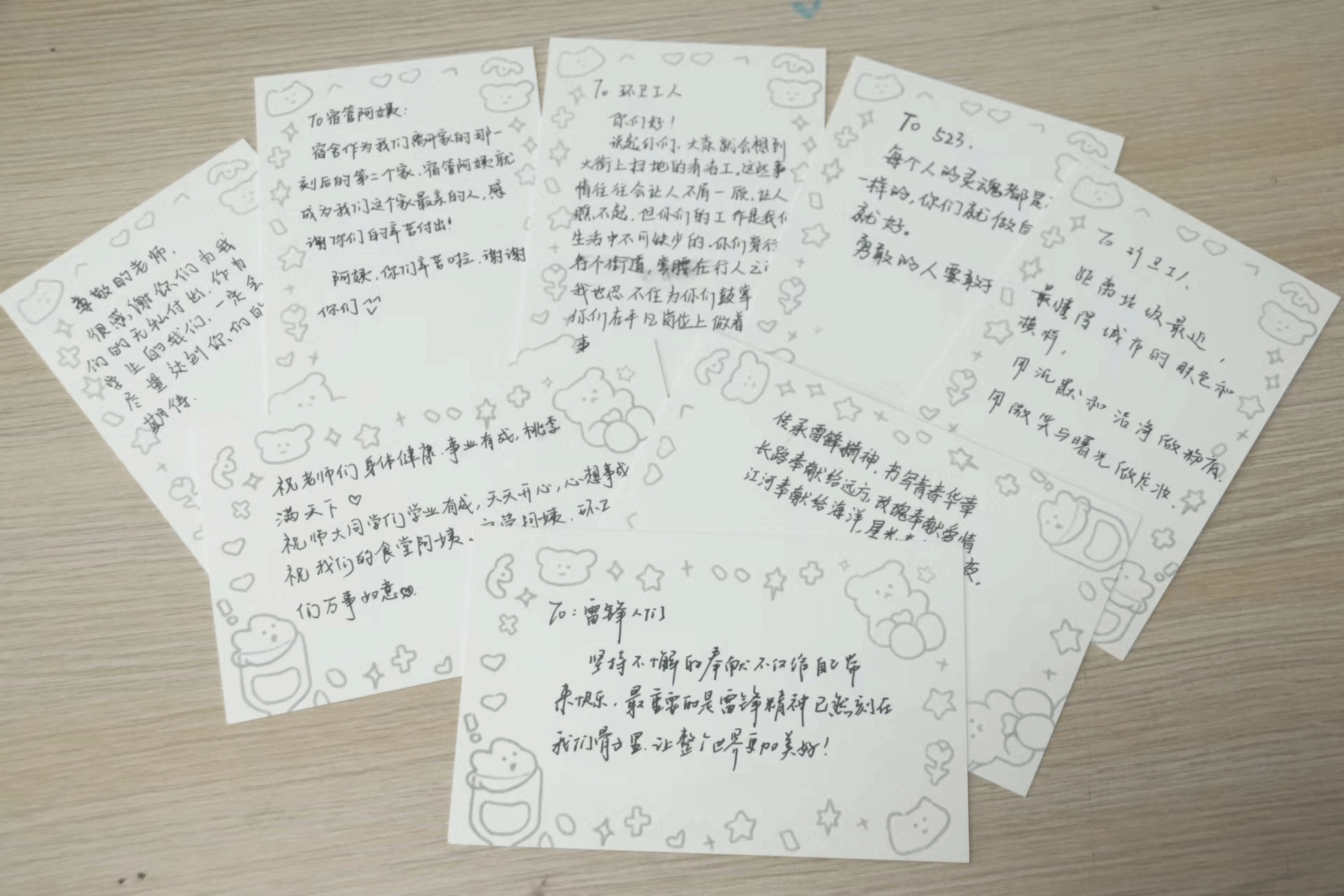 “感谢你的无私付出”、“祝愿你们事事顺心、万事如意”“祝大家平安喜乐”……随着活动的深入,越来越多的员工加入到写明信片的行列中,将手中的明信片写给他人,“我是写给宿舍阿姨的,在离开家后宿舍阿姨就成为我们在学校生活中最亲近的人,关注着我们的生活起居、生命安全,为我们服务着,所以我也想借此机会向她们表示感谢,谢谢她们的辛苦付出。” 新闻传播学类专业2023(2)班余越说,“在参与这次活动的时候,我想到了很多曾经忽略的习以为常的事情,都是身边的人默默在做,我之后也会对他们时常保持感恩之心。”