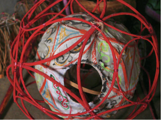 图为村民手工制作的舞狮灯球