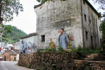 走进白石源村,映入眼帘的就是“一座建在北纬30°的村庄”的标识牌。在这里随处可见的红星标志和五星红旗,体现了这里革命旧址的过往。这里的红色文化墙上,绘有革命历史的画面和烈士的事迹的墙绘,如洪炳烛等革命英雄的故事。
